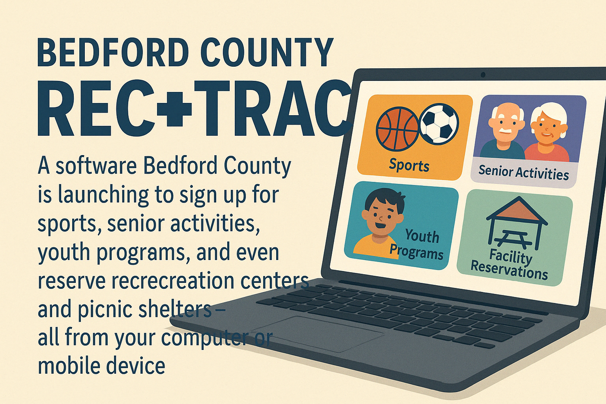On June 3, Bedford County Parks & Recreation will launch a new, user-friendly online registration system called RecTrac. This platform makes it easier than ever to sign up for sports, senior activities, youth programs, and even reserve our recreation centers and picnic shelters—all from your computer or mobile device. To