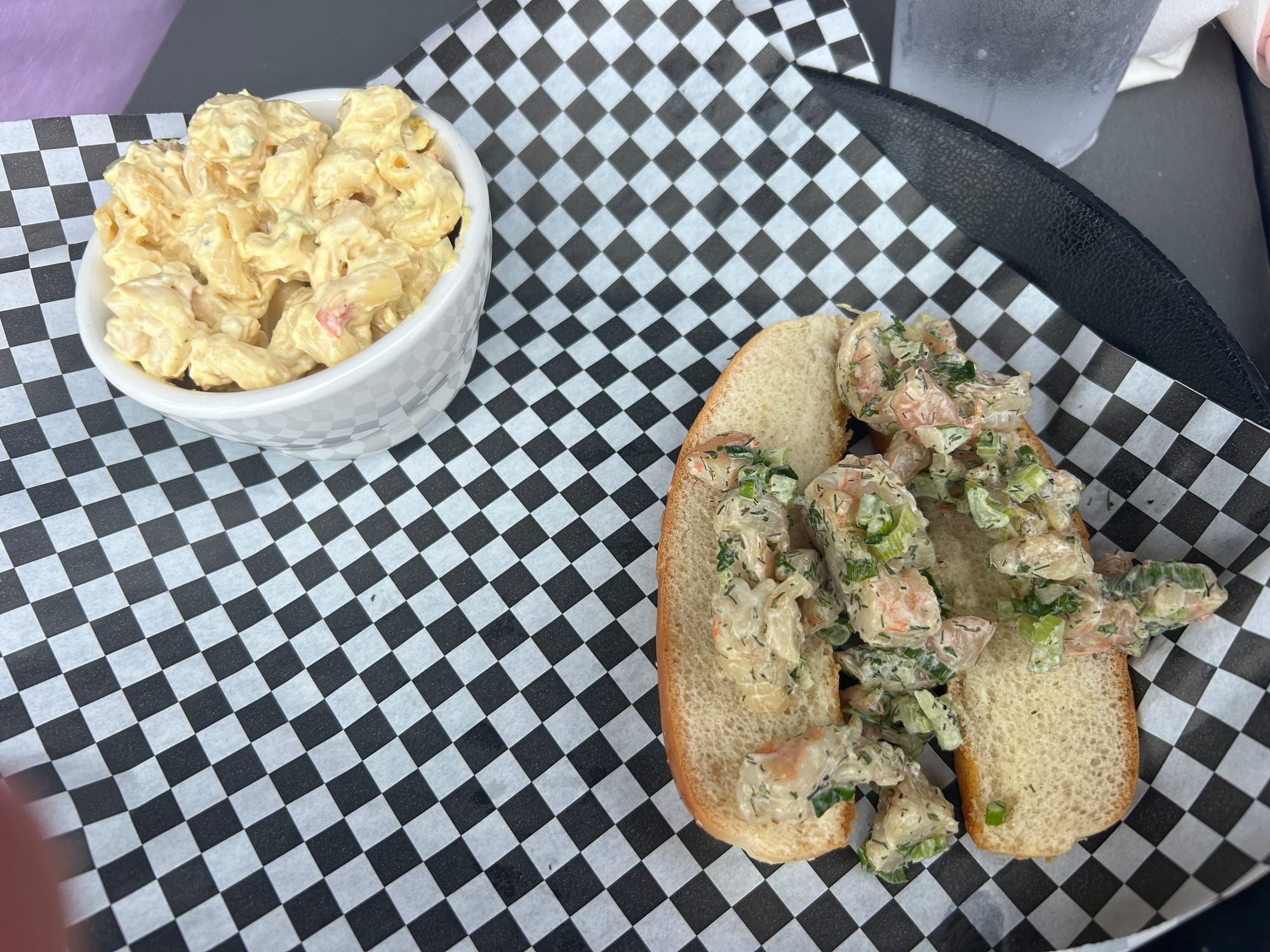 Curiosity led to one of the day’s specials: a shrimp salad served on a top-open roll. Marketed as an entrée, it set expectations somewhere in the realm of a hearty lobster roll-style offering. What arrived, however, was… surprising. The portion leaned more toward amuse-bouche than entrée—just a few small pieces of shrimp perched on what could only be described as a notably modest slice of toast. It was a miss in terms of scale, no question.